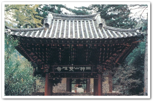 | 경남 하동군 화개면 운수리에 있는 쌍계사는 지리산 동남 기슭의 울창한 수림에 안겨 조용히 들어앉아 있는 대가람이다. 멀리 지리산 주맥에서 흘러내리는 화개천 상류의 물과 북쪽으로 오리쯤 떨어져 있는 불일폭포의 물이 합치는 승지에 있으며 절 입구 두 개의 바위에 새겨진 고운선생이 쓴 「쌍계,석문」이라는 글씨가 시선을 끈다. 또한 경내의 국보급 문화재인 「진감선사대공탑비」의 비문 역시 고운선생의 친필이다. 세상에 전하기로는 고운 최선생께서 이곳에서 글을 읽었다고 하며 뜰에 늙은 괴목이 서 있었는데 그 뿌리는 북쪽으로 작은 시냇물을 가로질러 서리서리 얽히어 다리(교)같으므로 절에 스님들로 하여금 다리로 이용하고 있다는 데 이 나무 또한 고운선생께서 손수 심으신 나무라 전하고 있다. |