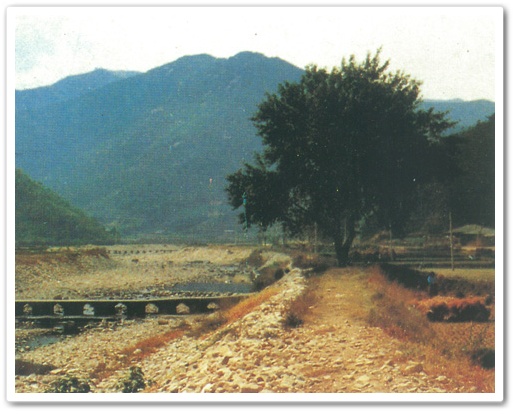 다만 전설을 뒷받침하는 금산동천은 있으나 석각은 없다. 사진에서 멀리 보이는 산이 금산이다.